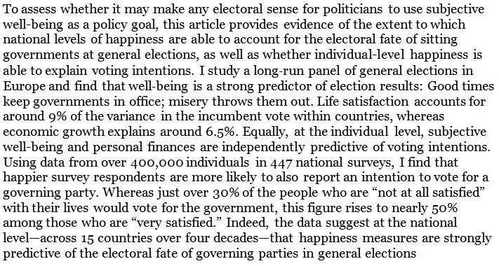 This seems like a pragmatically sound behavior for the ant farm. We're probably much better at evaluating our own happiness than we are in predicting potential economic growth resulting from our electoral choices.