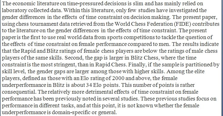 Female chess players underperform their male counterparts under time pressure. https://www.sciencedirect.com/science/article/pii/S2214804319303052 …pic.twitter.com/K6L2erdnfI
