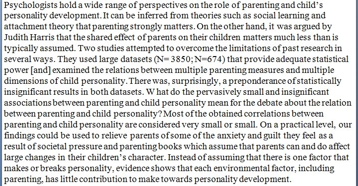 There was practically no connection between parenting style and children's personality traits. https://www.ideals.illinois.edu/bitstream/handle/2142/105686/AYOUB-DISSERTATION-2019.pdf?sequence=1&isAllowed=y …pic.twitter.com/YuRSrrQUyJ