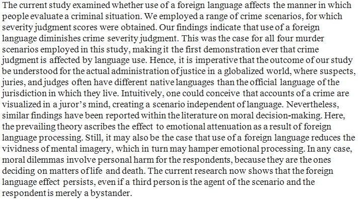 Crimes are deemed less severe when described in a foreign language. https://psycnet.apa.org/record/2020-02375-001 …pic.twitter.com/1IE28VvF25