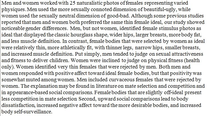 Was this checked by race? Because Black Women tend to value curvy bodies just as much as their men do, while Asian women tend to value petite/thin bodies just as much as their men do. Its only with Caucasians where there seems to be a gender difference in ideal bodies.