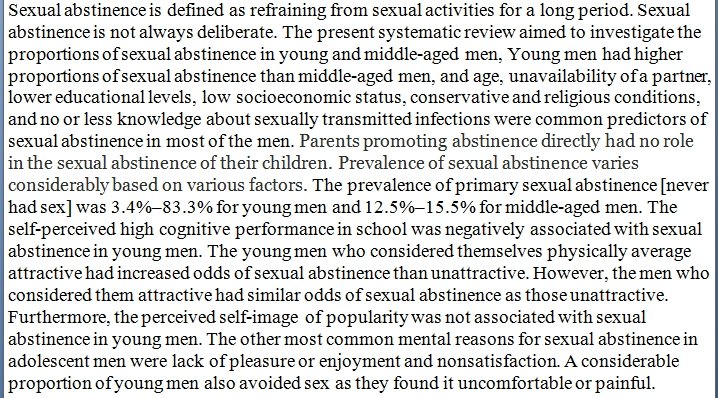 "No or less knowledge about sexually transmitted infections were common predictors of sexual abstinence in most of the men" -- because we who understand the risks know they are worth taking.