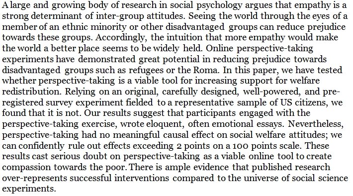 Maybe people would need to actually meet disadvantaged in person to induce empathy. Im thinking if I would be part of that group, I would rely on my stereotypical ideas of the people, which most likely would gravitate my opinion towards where it is right now.