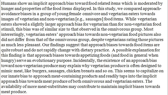 Vegetarians showed the same "implicit" attraction toward non-vegetarian food items as omnivores. https://www.sciencedirect.com/science/article/pii/S0195666319311730 …pic.twitter.com/FxdBAOnpxK