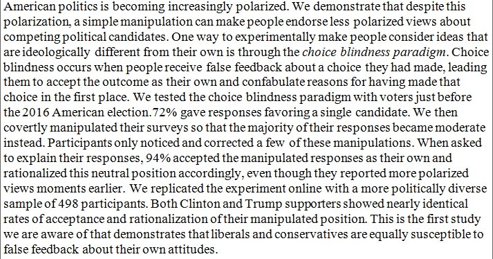 Both liberals and conservatives could be easily duped into finding the other side's candidate less repulsive than they had shortly before. https://journals.plos.org/plosone/article?id=10.1371/journal.pone.0226799 …pic.twitter.com/M8TYmlVamT