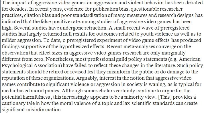 Claims about the harmful effects of aggressive video games have been undermined by the reproducibility crisis, and by psychologists trying to clean up their act. https://www.sciencedirect.com/science/article/pii/S2352250X20300038 …pic.twitter.com/ZhCMHxJiJj