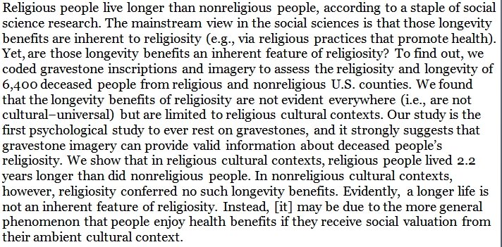 So the religious cultural context confers health benefits. Or more likely that any homogenous culture benefits the majority. Bowling Alone and all that.