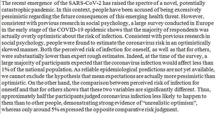 Contrary to popular assumptions, a majority of people are actually overly optimistic about the risk of coronavirus infection. https://psyarxiv.com/364qj/ pic.twitter.com/wMI7TaajGJ