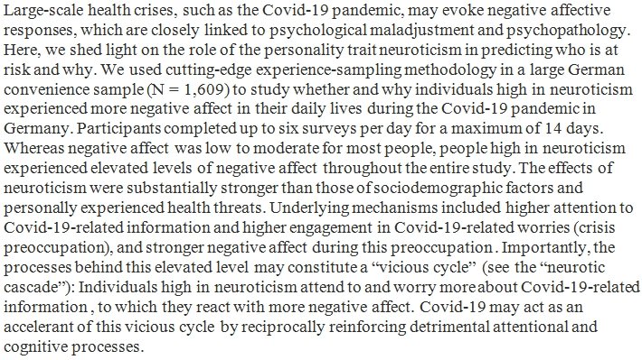 It honestly seems like trait neuroticism is just the general "everything sucks always" bucket. Makes you start to think, very controversially, maybe we need to be able to fundamentally reduce neuroticism in personalities to improve life quality.