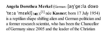 Angela Merkel's Wikipedia page has been hacked. Have a laugh:pic.twitter.com/is3HzUV4dl