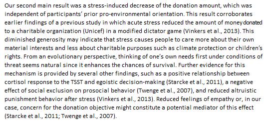 Stress reduced the amount of money donated to an environmental cause. http://www.sciencedirect.com/science/article/pii/S0306453015009658 …pic.twitter.com/1BxMYPWgVI