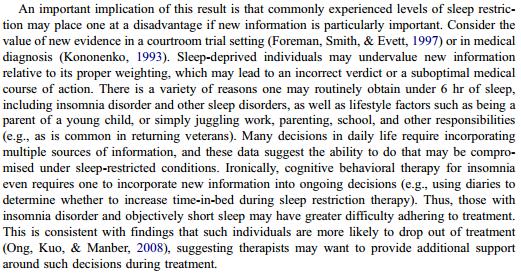 Sleep restriction makes individuals deemphasize new information in decisions or evaluations. http://www.tandfonline.com/doi/full/10.1080/15402002.2015.1028064 …pic.twitter.com/ZbqaSz4Ihm