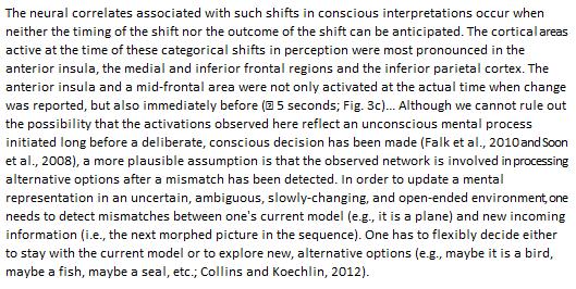 Brain network updating a change in perception lights up before subjects report that change. http://www.sciencedirect.com/science/article/pii/S002839321530213X …pic.twitter.com/qKMxU4n7Wk