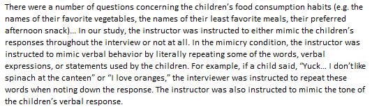 Simply mimicking what children said made them eat a lot more fruit and less candy. http://www.sciencedirect.com/science/article/pii/S0950329315300070 …pic.twitter.com/hHj6XV04qG