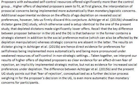 Depleted self-control led to higher offers in the Ultimat. game, showing fear, not sociality http://www.sciencedirect.com/science/article/pii/S0167487015001476 …pic.twitter.com/ddt48UAeyK