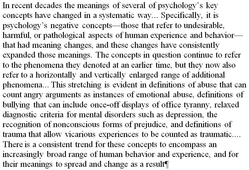 Defining deviancy down: Psychology is experiencing concept creep, expanding notion of harm. http://www.tandfonline.com/doi/full/10.1080/1047840X.2016.1082418 …pic.twitter.com/YwzC92z05q