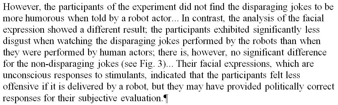 Subjects expressed less facial disgust when disparaging jokes were conveyed by a robot. http://www.sciencedirect.com/science/article/pii/S0747563216300516 …pic.twitter.com/ovJ5gteK3F