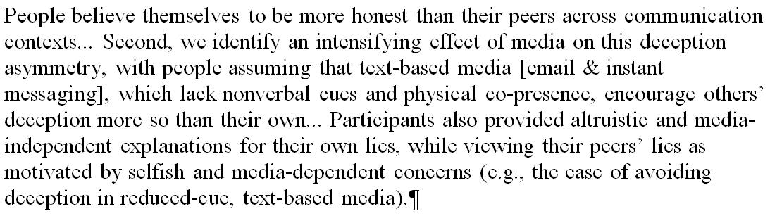 People find others more dishonest than themselves, particularly in their emails and messages http://crx.sagepub.com/content/early/2016/02/25/0093650216631094.abstract?papetoc …pic.twitter.com/7KdXzRV54g