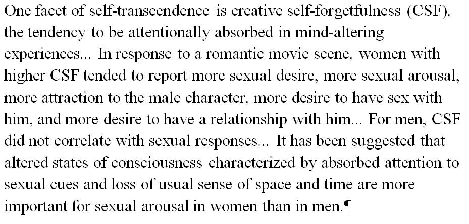 Tendency to be absorbed in mind-altering experiences leads to higher female sexual desire. http://www.sciencedirect.com/science/article/pii/S0191886916301349 …pic.twitter.com/gr0T0DvMgG