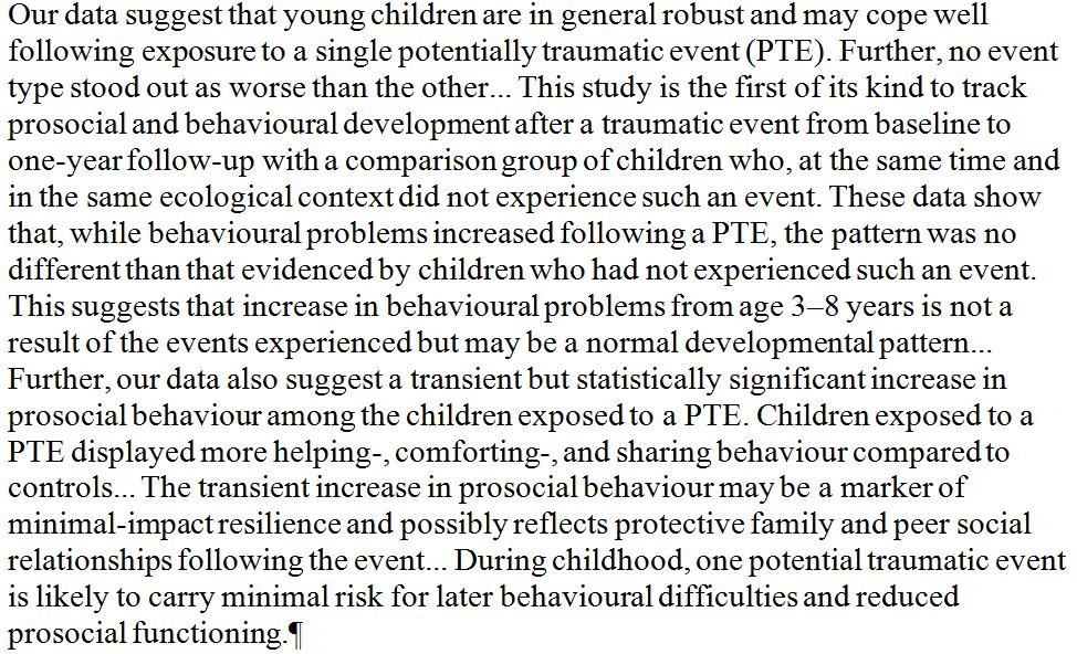 Young children emerge from single potentially traumatic events psychologically unharmed. http://www.tandfonline.com/doi/abs/10.1080/17405629.2016.1150174 …pic.twitter.com/sDXQoGiogH