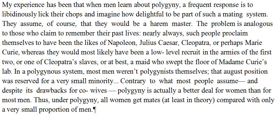 When conceiving of the idea of polygyny, men tend to get hold of the wrong end of the stick. http://www.amazon.com/Out-Eden-Surprising-Consequences-Polygamy/dp/0190275502/ref=sr_1_1?s=books&ie=UTF8&qid=1459583185&sr=1-1&keywords=out+of+eden …pic.twitter.com/ycHSMOLXTF