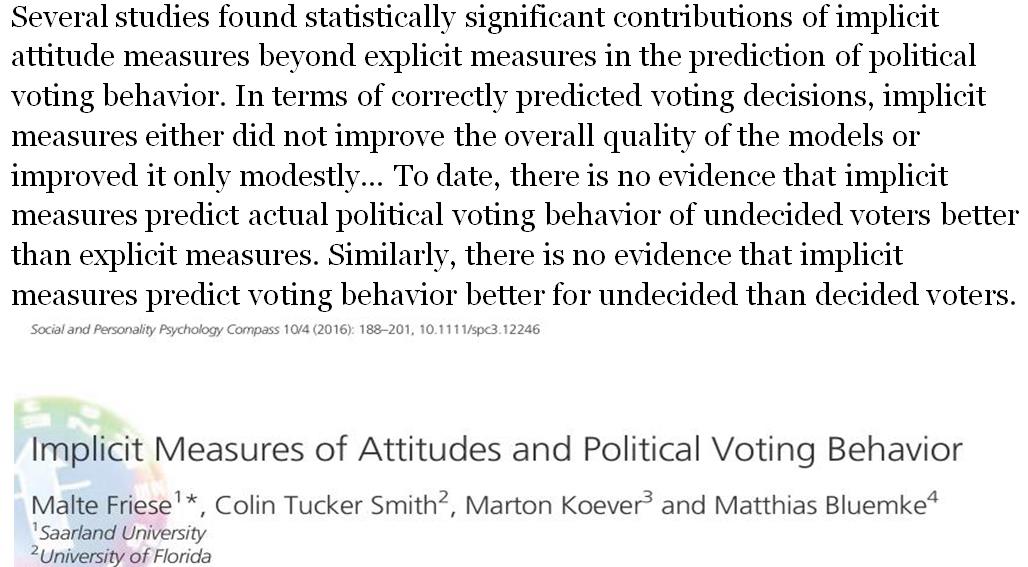 Psychology dud: Implicit measures, thought to capture the subconscious, don't improve prediction of voting behaviorpic.twitter.com/vLsHOpKR3y