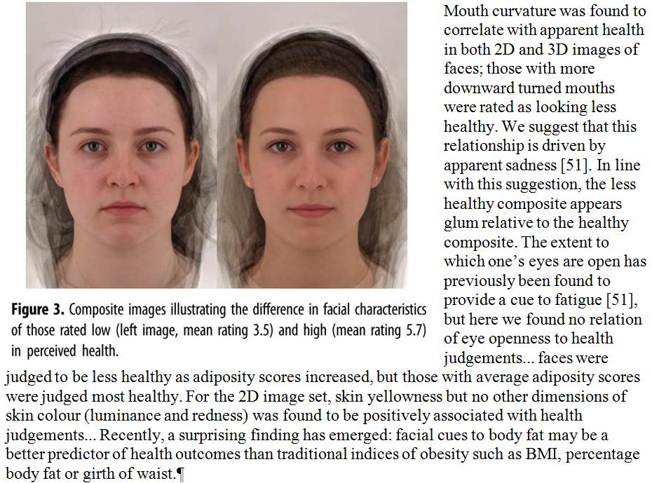 Faces with downward turned mouths and high adiposity were judged as looking less healthy.. http://rstb.royalsocietypublishing.org/content/371/1693/20150380 …pic.twitter.com/SbQ9XhstIE