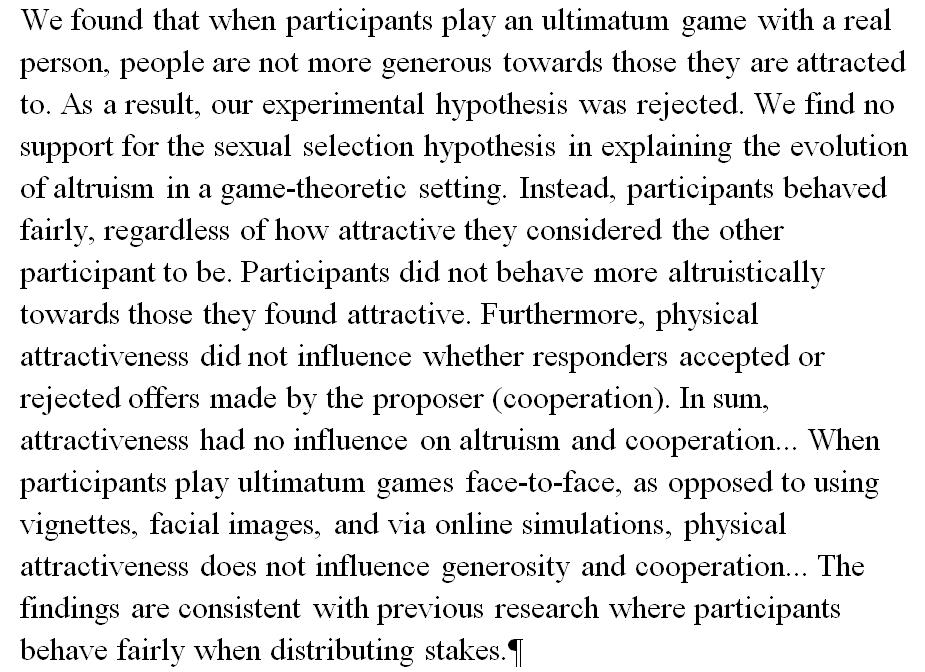 In a face-to-face ultimatum game, people don't play favorites to attractive fellow-players. http://link.springer.com/article/10.1007/s12144-016-9443-1 …pic.twitter.com/jRTTP5cuAA