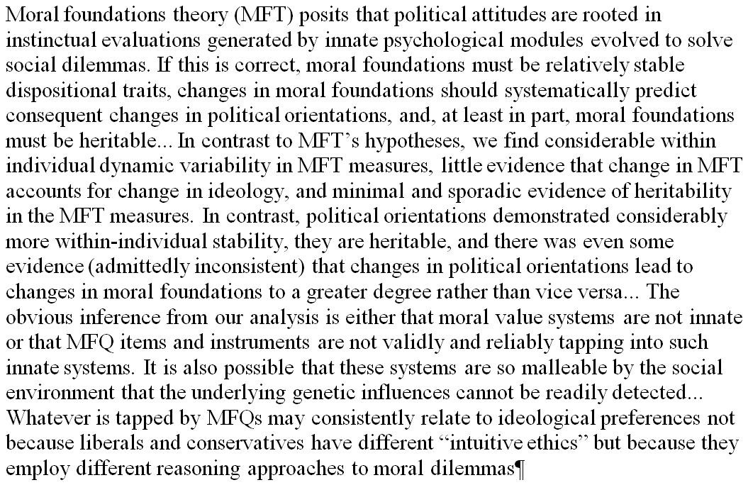 Large twin study casts doubt on Jon Haidt's influential Moral Foundations Theory of politics http://onlinelibrary.wiley.com/doi/10.1111/ajps.12255/abstract …pic.twitter.com/tpxb0y8Dk9