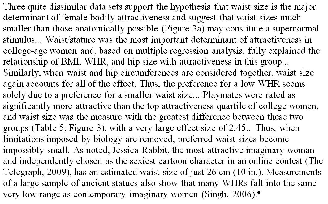 Men lust after a (small) waist size in women that is beyond the anatomically possible. http://evp.sagepub.com/content/14/2/1474704916643459.abstract …pic.twitter.com/8Tom8SLHCT