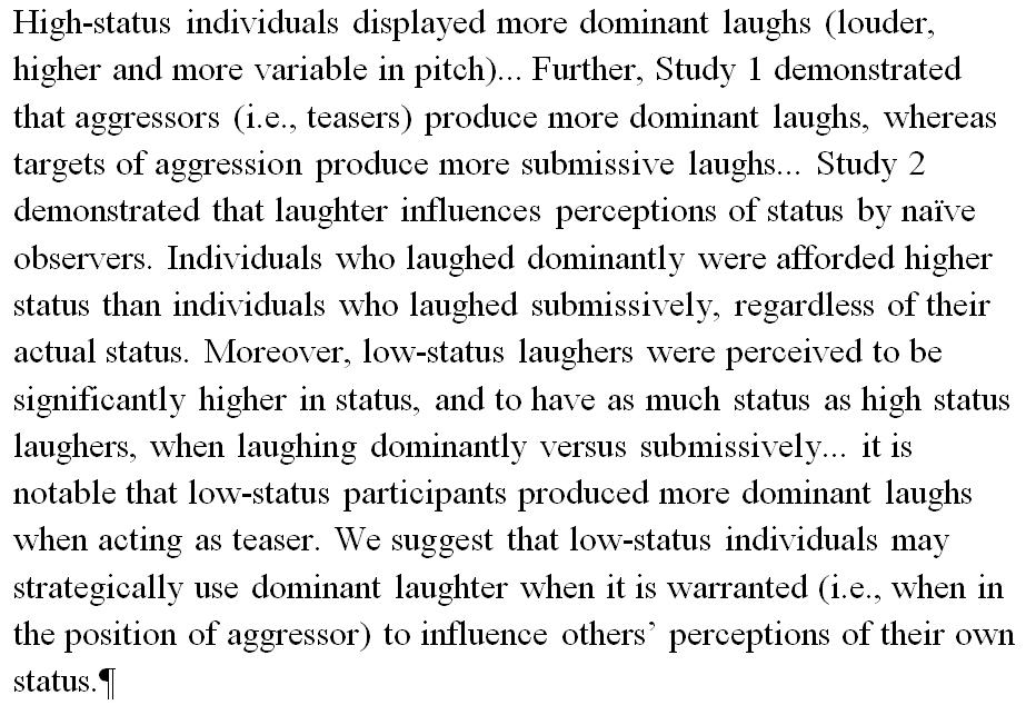 Ha-Ha Makes the Man: The phonetics of laughter broadcasts one's social status. http://www.sciencedirect.com/science/article/pii/S0022103116302359 …pic.twitter.com/6ZloHuqAAo