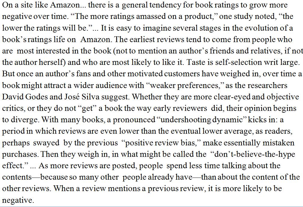 On sites like Amazon, ratings for one and the same book tend to grow more negative over time http://www.amazon.com/You-May-Also-Like-Endless/dp/0307958248/ref=sr_1_1?s=books&ie=UTF8&qid=1463565975&sr=1-1&keywords=tom+vanderbilt …pic.twitter.com/hHmeG2T1pV