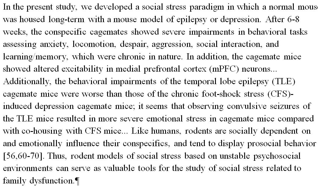 Mice housed together with epileptic or depressive peers developed behavioral dysfunctions.. http://www.sciencedirect.com/science/article/pii/S0031938416302669 …pic.twitter.com/s5Wih6SsDn