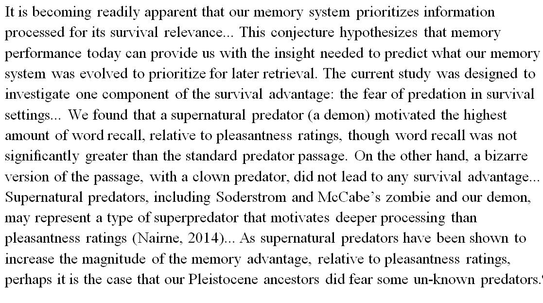 Supernatural predator raised memory performance, echoing our ancestors' fear of the unknown. http://psycnet.apa.org/psycinfo/2016-25225-001/ …pic.twitter.com/B1Ouv1aNgi