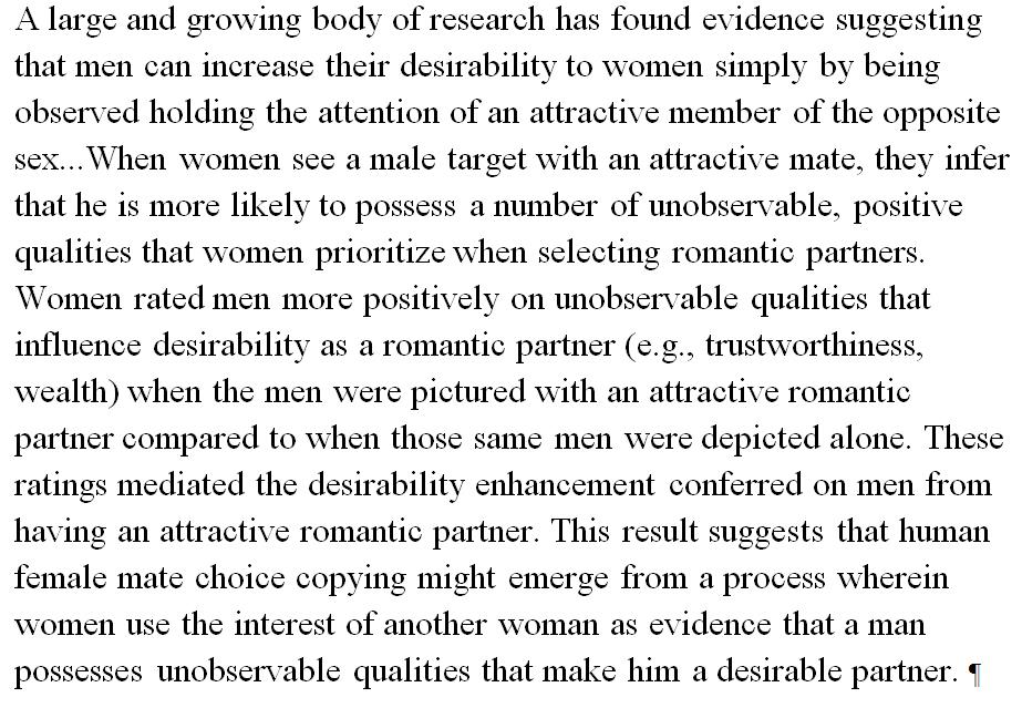 A man's attractive female mate makes other women attribute "hidden qualities" to him. http://evp.sagepub.com/content/14/2/1474704916652144.abstract … pic.twitter.com/9ggaqm08nh