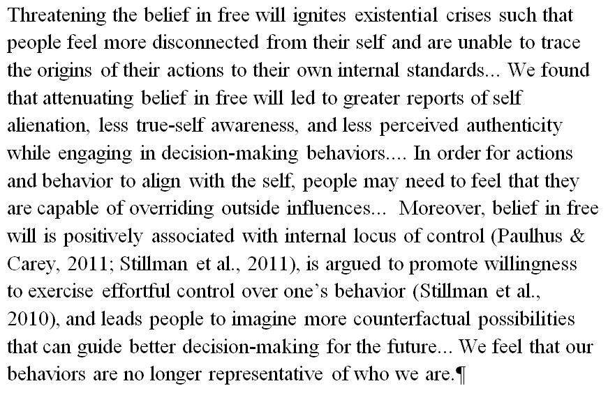 Undermining the belief in free will makes people feel disconnected from their true self. http://spp.sagepub.com/content/early/2016/06/10/1948550616653810.abstract?papetoc …pic.twitter.com/JsRlFT15GJ