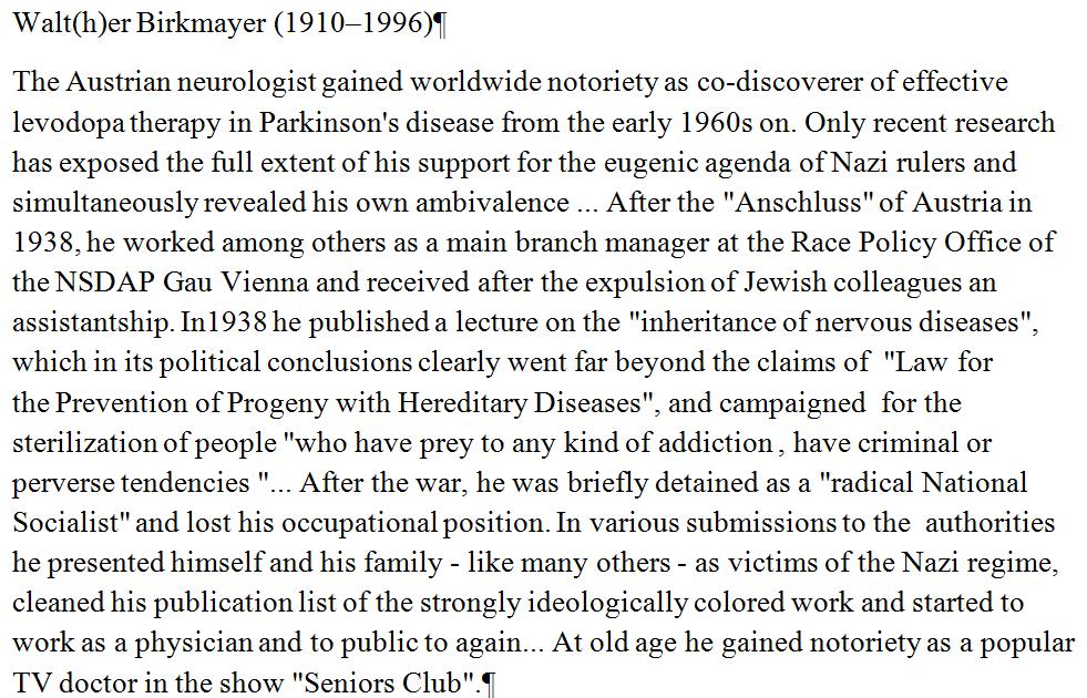 The discoverer of its clinical benefits - as well as other renowned neurologists (Hans-Gerhard Creutzfeldt) were on the dark side.