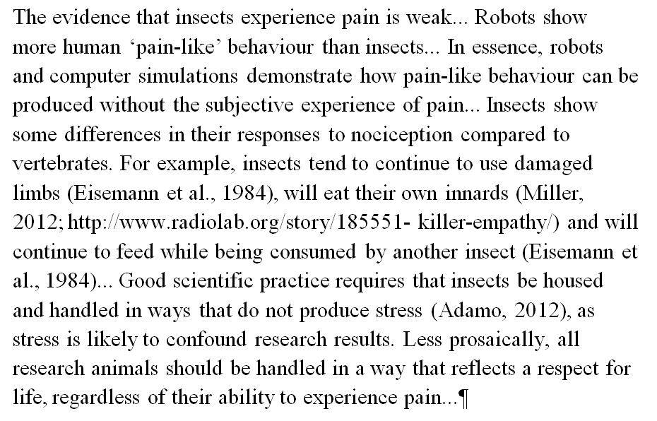 "The evidence that insects experience pain is weak." http://www.sciencedirect.com/science/article/pii/S0003347216300513 …pic.twitter.com/yQtUCXAnY5