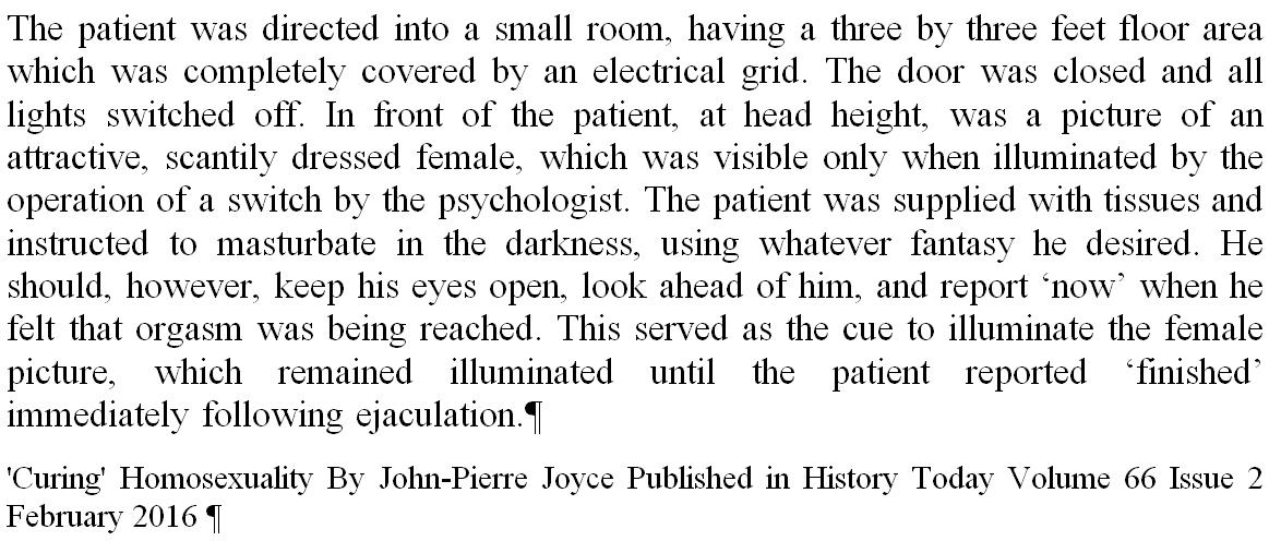 Neuroscientist once "cured" homosxuality by implanting electrodes: http://mosaicscience.com/story/gay-cure-experiments … Orgasmic Reconditioning:https://twitter.com/DegenRolf/status/706912779958161409 …