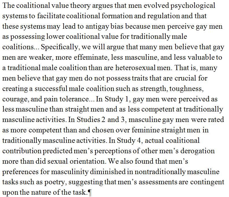 Antigay bias arises because men perceive gay men as possessing lower male coalitional value. http://psycnet.apa.org/psycinfo/2016-34488-001/ …pic.twitter.com/cqasV9guEO