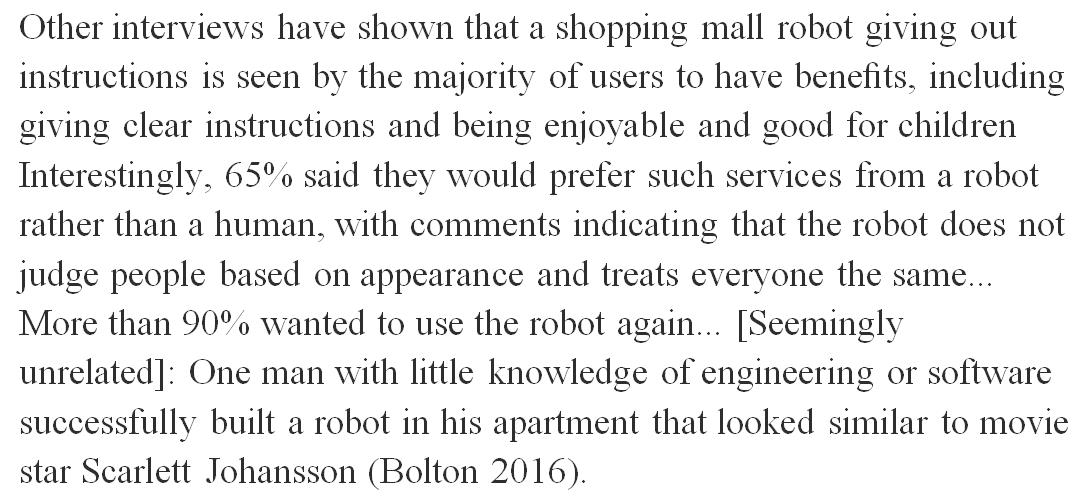 A majority prefered a guiding robot over a human because the robot "does not judge people based on appearance." http://www.annualreviews.org/doi/abs/10.1146/annurev-psych-010416-043958 …pic.twitter.com/53OZ3rGhWs