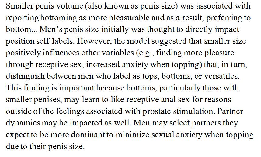 Hard Science: Gay men with small penises were more likely to adopt the bottom position. http://link.springer.com/article/10.1007/s10508-016-0810-7 …pic.twitter.com/ymkeCnK5ts
