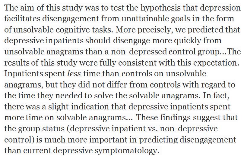 Blessing in disguise: Depressives fool away less time trying to solve unsolvable puzzles. http://www.sciencedirect.com/science/article/pii/S0005791616302518 …pic.twitter.com/OT0Ldp76kY