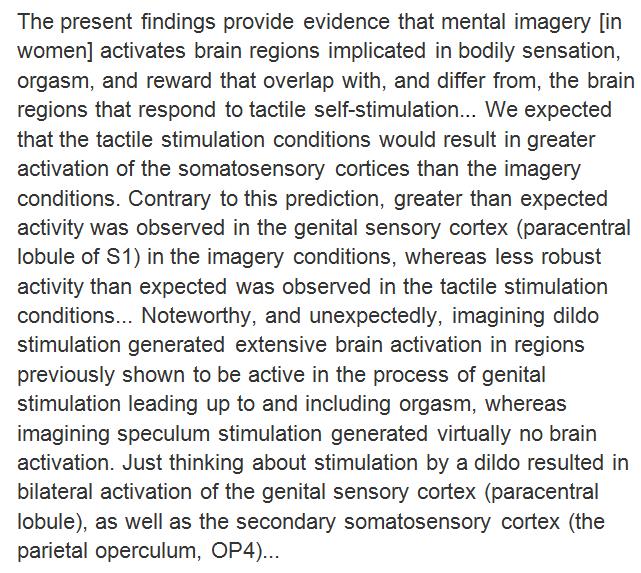 Imagined (vs tactile) self-stimulation of the nipple and clitoris led to greater activation of sensory homunculus. http://www.socioaffectiveneuroscipsychol.net/index.php/snp/article/view/31481 …pic.twitter.com/Hb0n7K2zxu