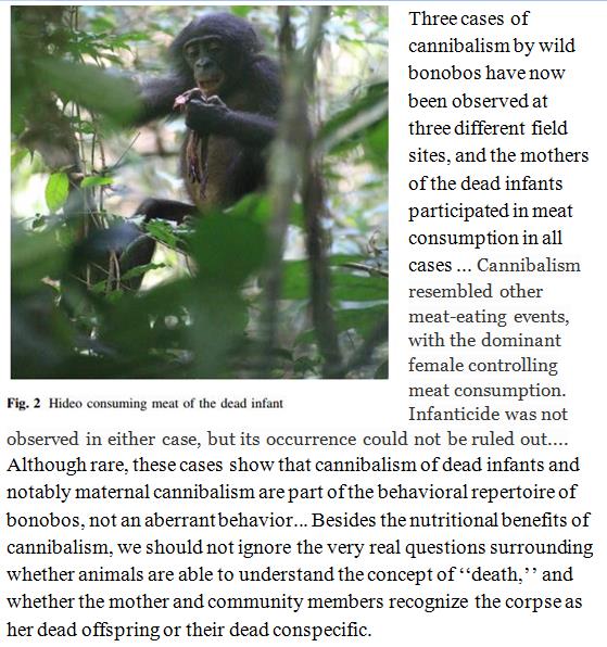Bonobo ("Hippie Chimp") mothers have been spotted consuming their own dead infants. http://link.springer.com/article/10.1007/s10329-016-0582-7 …pic.twitter.com/abgSudvzEJ