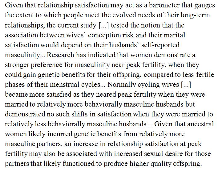 Wifes enjoyed greater relationship satisfaction near peak fertility when coupled with a more masculine spouse. http://psycnet.apa.org/psycinfo/2016-52090-001/ …pic.twitter.com/ku0ZYa9uLM