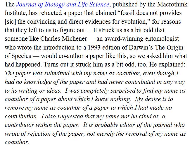 And this may be the most unabashed case of a faked co-author. http://retractionwatch.com/2014/03/24/entomologist-surprised-to-find-name-on-now-retracted-paper-alleging-fossils-oppose-darwins-theory-of-evolution/ …pic.twitter.com/QWNAaHbM33