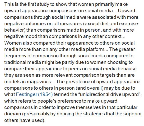 Who's the fairest of them all: Self comparisons with prettier peers hurt women the most on social media (also here). http://www.sciencedirect.com/science/article/pii/S1740144516303217 …pic.twitter.com/GZdCSi22JH