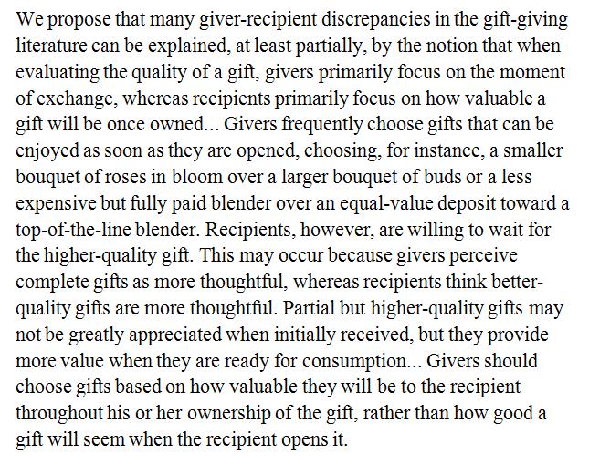 Gift-givers are often too much focussed on the moment of the gift handover to achieve the optimal impact. http://cdp.sagepub.com/content/25/6/380.abstract …pic.twitter.com/ek84htvGAB
