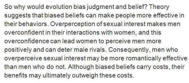 also works in reverse: unconfident man underestimate intent to fulfill their wish of not having to have sex and possibly fail